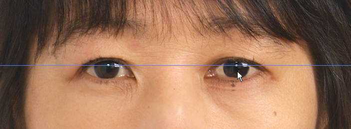 まずは目の位置を調整します。見てわかるように眉の位置は左右同じなので顔が傾いているのでは無いことがわかります。