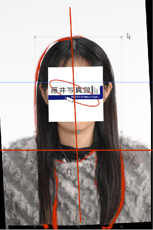 正中線のズレは簡単に修整できるものもあれば髪型や服装によっては難しくなるものもありますが、基本的にははこのような作業で修整します。