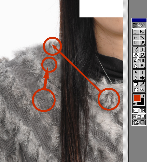 今度は右の襟の一部をコピー&ペーストして修整します。