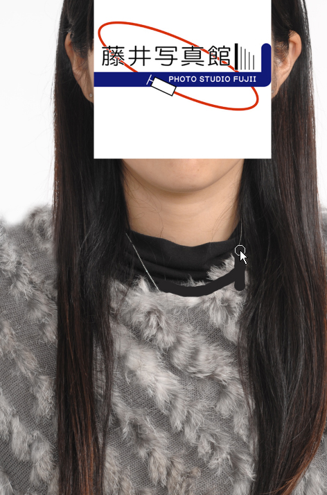 こうなってしまうと、右肩の襟の開いてしまった部分を埋めながら襟の中央部分も少し画面右にずらす作業をしながらネックレスもちゃんとしましょう。