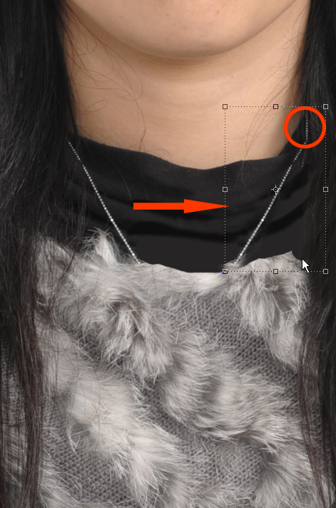 これくらいの範囲でコピー&ペーストしたら、自由変形で襟を引っ張りあげます。