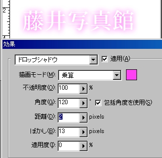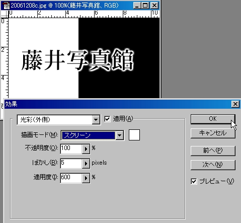 ドロップシャドウより、この光彩(外側)は用途が広く、文字加工には必ずといっていいほど活躍します。