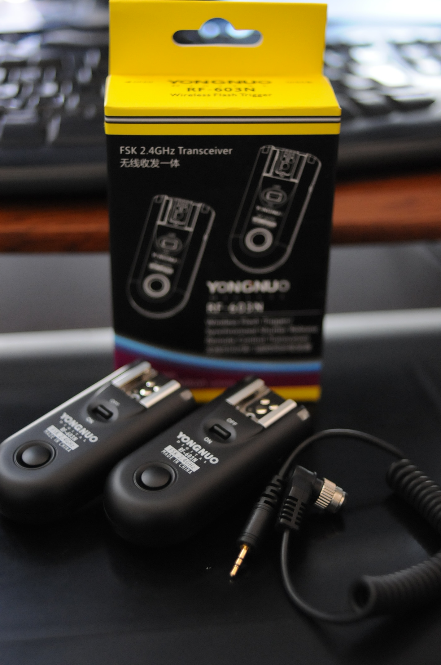 ご覧の通り、ワイヤレスレリーズのできあがり。もちろん複数のRF-603があればストロボにセットしてワイヤレス発光が可能。